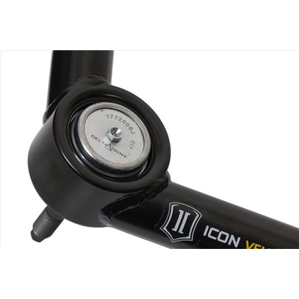 These upper control arms feature ICON's patented Delta Joint. The Delta Joint is a heavy-duty high angle ball joint that combines the durability of a ball joint with the performance characteristics of a traditional uniball. While the industry standard uniball does a great job of allowing the control arms of a vehicle to articulate with little bind, they do have an inherent weakness that leaves more to be desired when used in a daily driven application - exposure to the elements. The Delta Joint features a zinc plated housing providing the first layer of corrosion resistance, while a tough grease seal keeps potentially harmful elements out of the inner workings of the joint. Metal on metal construction and a greaseable design increase the longevity of the Delta Joint while at the same time allowing for noise-free operation. What makes the Delta Joint unique is that it brings the best of both worlds to ICON upper control arms with features that make it more robust than a uniball, and at the same time capable of greater angularity than a typical ball joint.