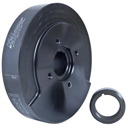 A new Fluidampr on your diesel truck will not only protect your engine from destructive torsional vibrations but will also increase TORQUE & HORSEPOWER. High performance diesel engines running chips and programmers are exceptionally vulnerable to torsional vibrations. Save your crank & more by installing a new Fluidampr today. Each time the air/fuel mixture inside a cylinder is ignited, the combustion event creates a torque spike that is applied to the crankshaft through the pistons and rods. This torque spike is so severe that it not only turns the crankshaft, it actually twists the crankshaft ahead of its normal rotation and then the crankshaft rebounds. This twisting action is known as torsional vibration. When these torque spikes get into phase with the natural frequency of the crankshaft assembly in the engine, critical torsional harmonic vibrations occur that are destructive to the bearings and crankshaft.Each Fluidampr is manufactured to meet or exceed OEM specifications.Unlike a stock elastomer harmonic balancer, Fluidampr performance dampers protect across a broad frequency range and can become more effective as magnitude increases throughout your RPM range. Each Fluidampr performance damper is designed for the engine application it is intended for.Fluidampr performance dampers consist of a free rotating inertia ring inside a laser sealed outer housing within tight tolerance of each other. Both the inertia ring and the outer housing are computer balanced to exceed OEM specifications during manufacturing. Between the two, an area referred to as the shear gap is pressure injected with viscous silicone. This specialized silicone maintains stability across an extreme temperature range and provides superior heat dissipation.As soon as your engine fires torsional vibration is present. To damp its destructive effects, the outer housing turns at engine RPM, while the inner inertia ring immediately self-centers and is free to be "shocked" by each torsional vibration event. As the inner inertia ring moves in-and-out of RPM with the outer housing, the shearing force through the silicone transforms the vibration to heat, which rapidly dissipates through the housing. Since the mass of the inertia ring is engulfed in a thin film of silicone and not directly connected to the crank, it can be calculated that only 2/3 of the total Fluidampr weight is rotating at RPM. For example, a 7.9lb Fluidampr for a Chevy LS1 only feels 5.3lbs at rpm.The Fluidampr design originated from top race engine builders requesting Vibratech TVD (formally Houdialle and parent company to Fluidampr) to bring its viscous damper technology engineered for long-life, high power diesel applications to professional motorsports in the early-1980s to replace failing elastomer designs. Viscous torsional dampers are used today as original equipment on select luxury sportscars, light-Duty diesel trucks and even military spec engines. Meanwhile, nearly all high power engines that move our economy depend on a viscous damper for superior protection, performance and durability.