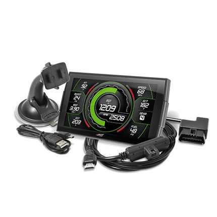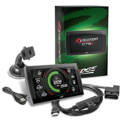 The Evolution CTS3 reprograms your vehicle's stock computer through the OBDII port of the vehicle. The Evolution is used to save the stock files from the vehicle's computer and then upload the Edge calibrations into the vehicle's computer. This product comes with multiple power levels custom tuned by a whole team of engineers and can be installed in minutes without ever popping the hood. The Evolution greatly increases horsepower and torque and not only does it re-tune your vehicle, it stays mounted in the cab of the vehicle and features real-time, monitoring of vital engine and vehicle data for a complete gauge package.