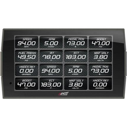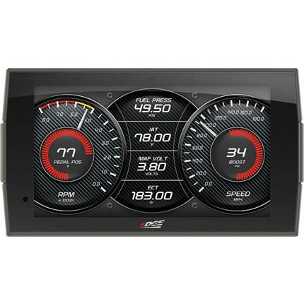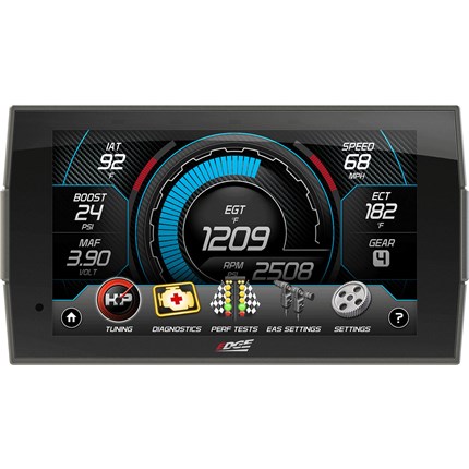 If you're looking for a product to improve throttle response, that extra power when towing, race down the track, increase fuel economy, or just improve the overall driveability of your truck then the Evolution is the option. Not only do you get these increase performance features but you get a monitor that offers a clean simple solution for gauges like EGT (exhaust gas temperature), Boost readings, transmission temp, load percent, percentage of fuel left, and more with the expandability to even add more with our EAS (expandable accessory system) or Edge's backup camera.