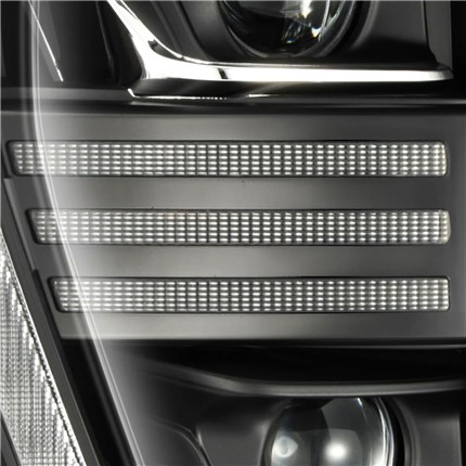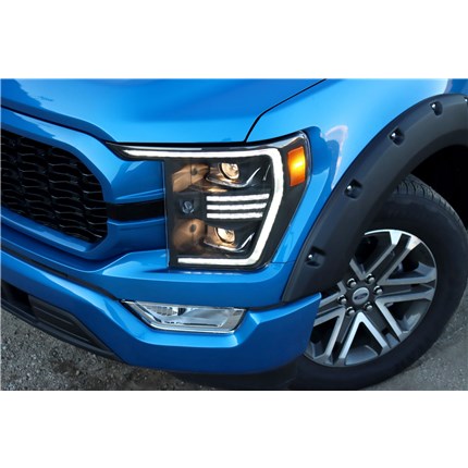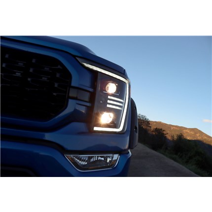 Choose between our Ford F150 PRO-series headlights with black or alpha-black housing options. The black housing provides a sporty appearance that effortlessly matches any truck color and front grill. For those seeking a combination of sportiness and luxury, our alpha-black housing is the perfect choice. It features a glossy look with a mix of black paint, chrome interior, and a clear DRL (daytime running light) bar. This unique design adds a touch of sophistication to your truck while maintaining a sporty aesthetic. Elevate the look of your Ford F150 with our PRO-series headlights and enjoy the perfect blend of style and functionality.