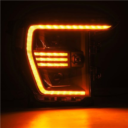 Enhance your style and visibility with the 14th gen Ford F150 PRO-series halogen projector headlights. These headlights are equipped with white LED daytime running lights (DRL) and amber LED sequential signal lights. When you change lanes or make a turn, the sequential signal lights provide an eye-catching and stylish visual effect, adding an extra level of sophistication to your Ford F150. Stand out on the road with these impressive and dynamic lighting features.