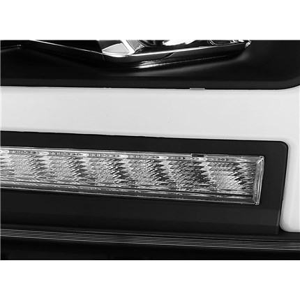 These PRO-Series projector headlights are with a dual projector design with a T-shaped DRL tube in white LED, and the bottom is with sequential turn signal in amber LED. The headlights also come with activation light, which is a light sequence that turn on when you unlock your vehicle. The inner projector is for high beam, while the outer projector is for low beam. These PRO-Series projector headlights are using H7 halogen bulbs for low beam and H7 halogen bulbs for high beam.