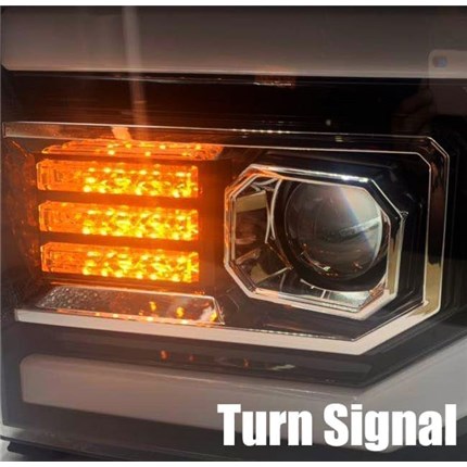 These PRO-Series projector headlights are with a dual projector design with a T-shaped DRL tube in white LED, and the bottom is with sequential turn signal in amber LED. The headlights also come with activation light, which is a light sequence that turn on when you unlock your vehicle. The inner projector is for high beam, while the outer projector is for low beam. These PRO-Series projector headlights are using H7 halogen bulbs for low beam and H7 halogen bulbs for high beam.