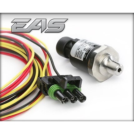 Edge's EAS Pressure Sensor is a 0 - 100 PSIg 1/8 NPT sensor that plugs directly into the Universal Sensor Input system (p/n 98605). Edge s Pressure Sensor comes equipped with the proper wires and connectors to plug right into the Universal Sensor Input system saving time and money on cutting, splicing, and crimping wire terminals to connect the sensor. Use Edge s Pressure Sensor to monitor data such as Boost PSI, Fuel Rail Pressure, Air Bag Pressure, Lift Pump Pressure, Pre and Post Intercooler Pressure and many more.