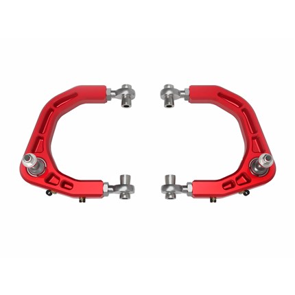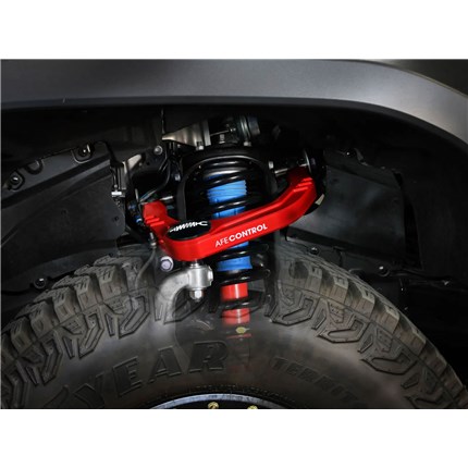Enhance your Toyota’s handling performance and style with the all-new aFe CONTROL Upper Control Arms. Although the factory control arms may be adequate with most front lift kits, the appearance of the OE arm leaves little to be desired. CNC machined from 6061-T6 billet aluminum, our control arm is beautifully sculpted with a unique design that is sure to set your truck apart from the crowd. Looks aren’t everything. aFe CONTROL has meticulously engineered the arms to have full camber and caster adjustment, including more than enough bearing articulation and coil spring clearance for a variety of lift kits. Whether you’re on a road trip with the family or off-roading on the trails, aFe CONTROL will get you there.