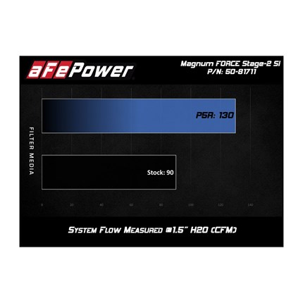 The all new aFe POWER Magnum FORCE Stage-2 Sealed Intake System produces up to 10 HP and 23 lbs. x ft. of torque over stock, while outflowing the factory intake up to 56%. The intake system features a large, 360 degree, Pro-GUARD 7 progressive cotton guaze oiled media filter and comes complete with all necessary hardware.