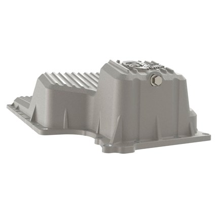 Magnetic plug: This engine oil pan incorporates a magnetic drain plug to capture loose particles for maximum protection.