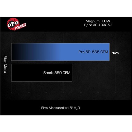 Pro 5R Filter Media: This filter features five layers of pre-oiled cotton gauze media to provide maximum performance. Its progressive layering allows the filter to flow at high levels even when dirty. This media is perfect for street and/or track use. Pro 5R filters are easily recharged with aFe's POWER CLEANER and blue air filter oil.