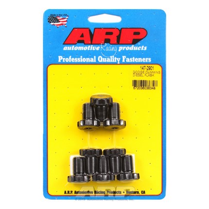 ARP's Flexplate Bolt Kit for Dodge Cummins, Ford Powerstroke, and GM Duramax diesels increase durability and safety. Flexplate bolts play an important role in getting the power from your diesel engine to your transmission. That's why the fastener experts at ARP have developed special bolts that are far superior to OEM hardware. ARP premium grade bolts feature an exclusive, flat 12-point head design and larger than stock shank diameter for increased strength and improved flywheel register. Complete with washers and nuts where applicable.