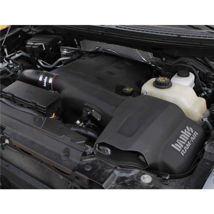 Banks opens up your truck's breathing with a flowbench-developed and dyno-proven Ram-Air Intake System that is 64.6% less restrictive than stock on the 3.5L at 600 CFM. Ram-Air's filter has a huge outlet with deep filter pleats that maximize flow and a complete air filter housing that draws in cooler, denser air to the engine for greater power and fuel economy.