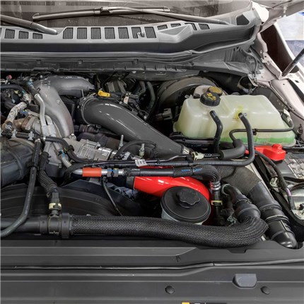 The Boost Tubes work with the stock Power Stroke intake components by using proprietary high-strength 5-ply silicone hoses and a billet aluminum venturi adapters for turbo outlet and throttle body connection. These are specially made for the airflow requirements of the 6.7L Power Stroke maintaining boost pressure and volumetric flow.