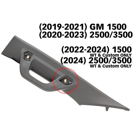 iDash Stealth Pods are direct-fit gauge mounts that affix to your 2019-2021 1500, 2020-2023 GM 2500/3500 or 2024 2500/3500 Work Truck factory A-pillar grab handle while concealing wires for a factory look. Each pod securely mounts to the body of the truck while being angled to enhance gauge viewing and ergonomics.