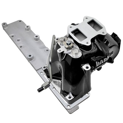 Utilizing the latest in CFD (computational fluid-dynamics), tested on the flow bench, the dyno, and on-road, Monster-Ram is a beast that only Banks could have unleashed. A direct-replacement aluminum casting, Monster-Ram is instant power, performance, and acceleration gratification. The factory inlet elbow is cramped and angular in order to accommodate the path of the stock No. 1 fuel line. Banks Engineers designed a new No. 1 fuel line, allowing the Monster-Ram to flow more air without obstruction.