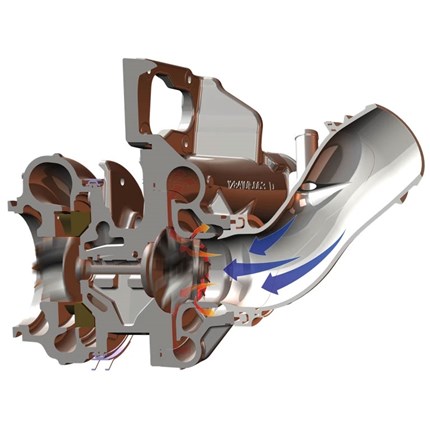 To prevent surge, various surge control system are employed to reduce the impact of the damaging reverse flow pulse and reduce the noise. On the Duramax L5P a slot in the compressor inlet bore feeds the pulses into an annular volume shaped somewhat like a donut. Here the pulse is diffused and the temperature and pressure spike is reduced. The boost air then makes a U-turn and re-enters the intake air through a pathway that is defined by the marriage of the turbo compressor housing with a correctly machined inlet elbow.