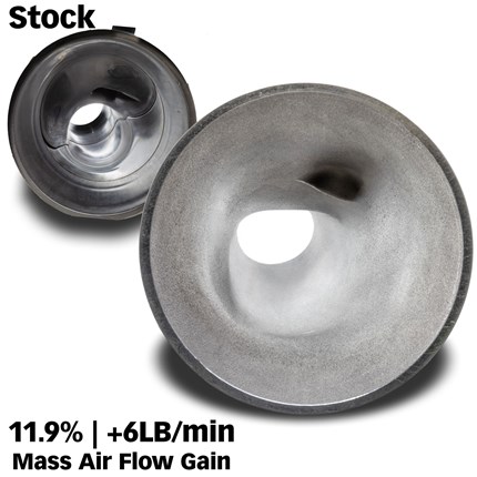 Areas on the factory inlet that choke down are widened. Abrupt changes to that airflow have been smoothed to provide the least resistance and pressure loss.
