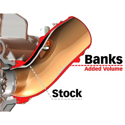 Cast from A356 Aluminum alloy and finished in Banks red powder coat or available in natural aluminum for custom coating, the Monster-Ram offers OE quality fit, finish, and durability.