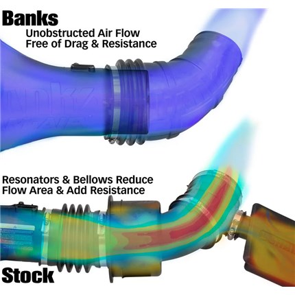 Banks' huge tapering intake elbow with exclusive bellows slide over the Banks Super-Tube allowing for free engine movement and unobstructed airflow into the turbo.