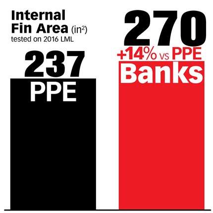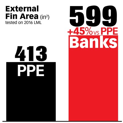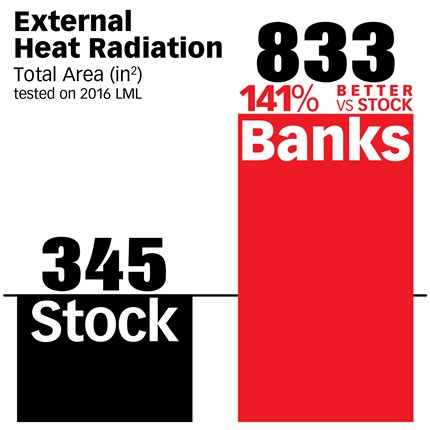 What happens when the Ram-Air goes against the competition? While others claim to have massive cooling ability with their designs featuring fins that cross haphazardly across their surface with no consideration for fluid dynamics, the Banks Ram-Air still comes out on top in total internal and external fin area.