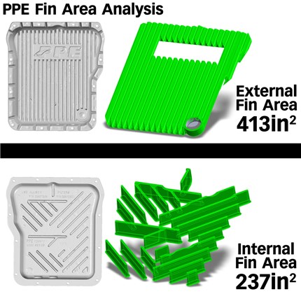 The stock Duramax pan is made from stamped steel which has no internal or external fins to assist in removing heat from the fluid inside.