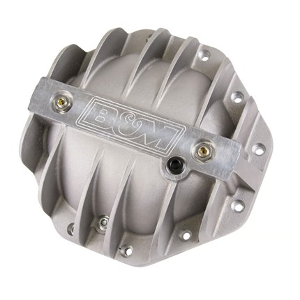 B&M engineers designed the line of Hi-Tek differential covers to not only look good but address a number of weaknesses of the factory stamped steel covers. First, they started by constructing the covers of thick A356.0-T6 aluminum, which dissipates heat much faster than the factory steel unit keeping the fluid temperature lower under high-stress loads vs. a steel cover. Then for added durability, we added a reinforced center bar for extra strength along with load bolts to help prevent bearing cap deflection under severe loads. The internal shape of the cover retains the smooth round back internally to help keep the fluid flow going over the ring gear to properly lubricate the gears and bearings. Additional features include a magnetic drain plug for catching ferrous metal particles, MIL-Spec (MIL-A-8625) black anodized finish, machined B&M logo, and all necessary hardware and easy to follow detailed instructions for a quick and simple installation you can do at home. Note: Gasket not included.