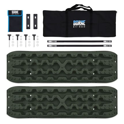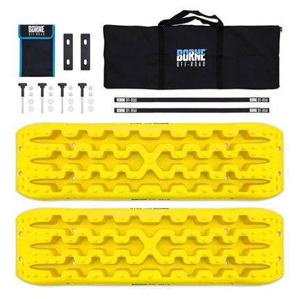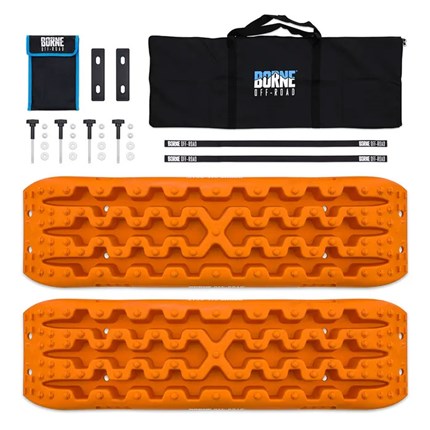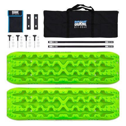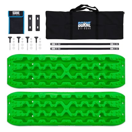 Borne Off-Road traction boards can aid large off-road vehicles and feature a maximum load capacity of 20,000 lbs. per board. Our traction boards also include a pair of recovery leashes, which quickly locate buried boards after use. Borne Off-Road traction boards are available in a variety of colors to suit any style and, as with all our Borne Off-Road products, this traction board set includes our signature Lifetime Warranty.