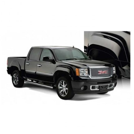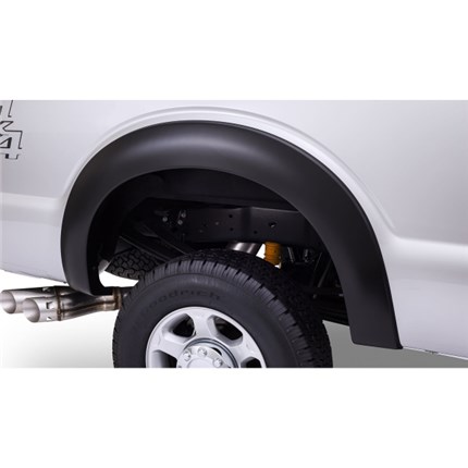 Give your truck or SUV the appearance of an upmarket trim level with Bushwacker "OE" Style Fender Flares. They install in minutes with no drilling. And, they're designed specifically to complement your vehicle's styling, so it looks like it came from the factory that way, with a fit, finish, and level of protection that exceeds original equipment. You can leave your "OE" Style Fender Flares with their original matte black finish for a sporty, blackout look. Or, paint them to match or accent the body color for the look of limited-edition luxury or something completely customized. Your "OE" Style Fender Flares are made with Dura-Flex 2000, our exclusive material designed for upgraded durability and flexibility. They're thick too, so they won't warp. And, they're 100% UV protected, so they won't chalk. "OE" Style Fender Flares deliver premium-grade protection with premium-level style.
