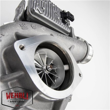 The L5P Stealth Mach 2 67 features the largest turbine and vanes available in this frame. Increasing turbine size dramatically reduces drive pressure under heavy load, helping you achieve nearly a 1:1 drive to boost ratio under most operating conditions. Controlling drive pressure helps make more power and significantly lowers EGT's. Stealth turbos featuring Calibrated's HFV upgrade are capable of producing more power, spooling up quicker, and managing EGTs better than those limited with factory nozzle rings.