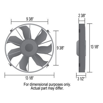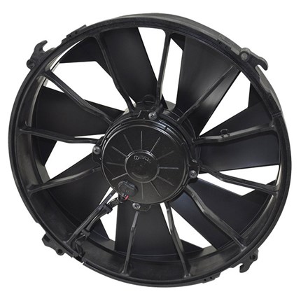 This 12" High Output Single RAD fan is a self-shrouded, symmetrical design with four molded mounting points. Motivated by a 300 watt motor driving 7 skewed blades, it can be used as a pusher with the supplied hardware kit. Fan can also be used as puller by combining with a custom built shroud. Moves 2000 CFM while drawing up to 24.8 amps. This is the replacement fan for part numbers 16814, 16825, 16826, 16836, 16837, 16838, 16842 & 16927.