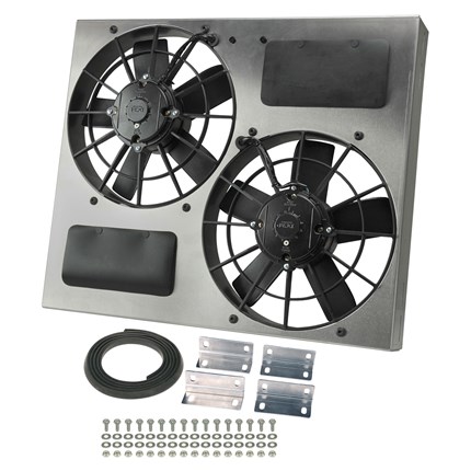 Product Name: Derale High-Output Dual 11" Electric Fan With Aluminum Shroud Manufacturer: Derale Thoroughbred Diesel Part #: DERHO11EFWS