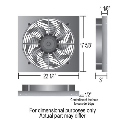 This High Output Single RAD Fan Powerpack is part of the HO Aluminum Shrouded Fan Series designed with popular applications in mind. This assembly measures 22 1/4" wide by 17 5/8" top to bottom and only 3" thick overall to offer a precision fit. The raw aluminum shroud gives the user the freedom to polish, anodize, paint, or simply leave it natural to create a truly custom look for an affordable price. The 17" high output two-speed fan is one of the best in our line-up offering 2400 CFM when on high to create the most airflow possible in a compact size.