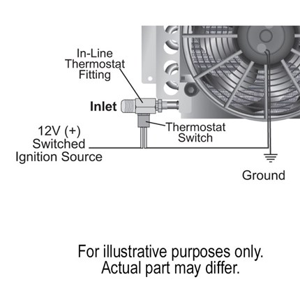 With a 180°F preset turn-on, 165°F turn-off, this -6AN x -6AN fluid control thermostat engages the fan on any remote cooler electric fan so that it comes on only when needed. Brass hose barb fittings included in kit. Maximum 15 amp capacity.