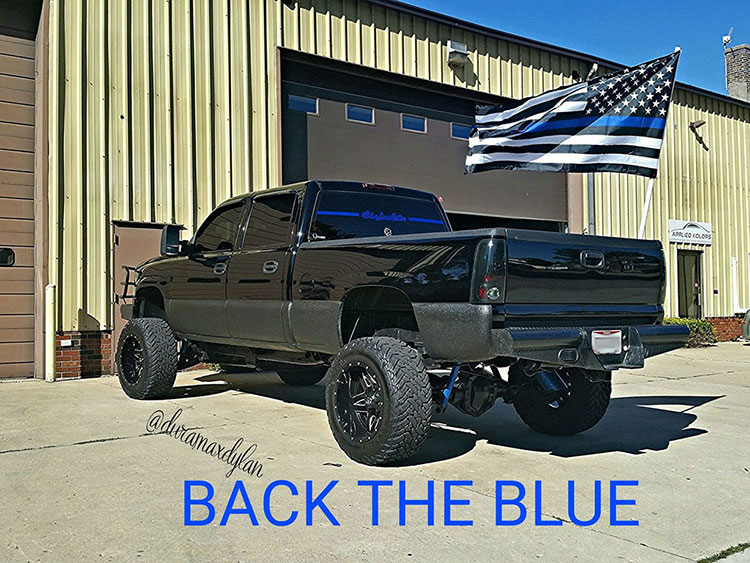 Dylan’s always had an interest for a career in law enforcement. With all of the negative publicity that officers have received the last few years, he felt inspired to pursue this Thin Blue Line theme. These men and women garner a lot of negative criticism, so designing his exterior and interior look around the theme was a very simple yet genuine way for Dylan to pay respect to their sacrifices.