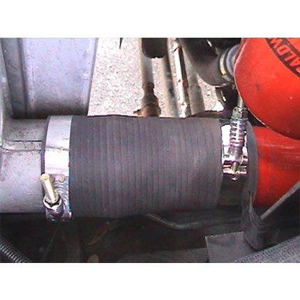 This is a DIESELSITE original product and has been treated with the highest quality. We ordered sample upon sample of hose material and clamps until we were satisfied with the quality of the parts and certain of their integrity in our application. Our boots are made of a hose that is reinforced with a 5-ply braided synthetic fabric. It will not kink or collapse. The special synthetic rubber is exceptionally resistant to heat, ozone, gasoline, gasohol, methanol, ethanol, and diesel fuel. It can withstand the engine heat and 100 psi boost pressure. With care, this is a virtually indestructible boot material.
