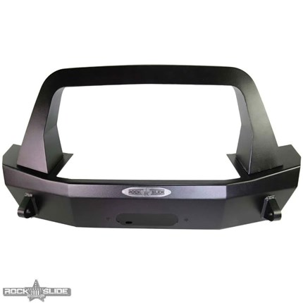 Rock Slide Engineering gives you a sleek, finished, look with the Rigid Shorty Front Bumper. It is built with 10-gauge steel, designed to follow factory lines and mate up with stock fender flares. The shorty will give you amazing approach angles when you are out wheeling. Coming with an integrated 1/4 inch steel winch mounting plate, constructed to allow good air flow intake to the radiator. The winch plate has two sets of holes allowing for a variety of industry winches to mount directly. We use a state-of-the-art automated powder coat system to acid etch the raw base material in preparation for the textured black topcoat. This product utilizes the factory mounting points for a no-drill installation. Fit with 6” light pockets and recovery points. The bull bar is an optional feature, but it does provide radiator protection in the event of a roll-over.