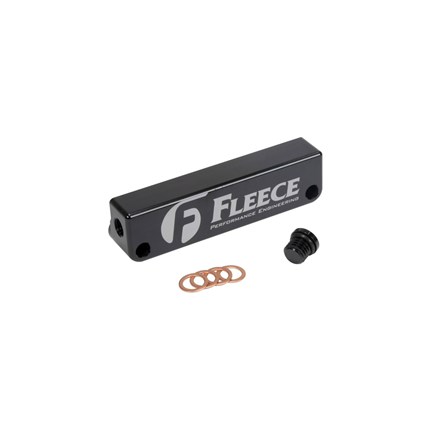 Upgrade your fuel system with this fuel filter delete from Fleece Performance Engineering. If you have an aftermarket fuel filtration system such as an Air Dog or a FASS, your factory fuel filter is no longer necessary. The factory fuel filter only becomes an extra restriction and an eye sore. This fuel filter delete will remove that restriction and help clean up under the hood of your truck. It mounts perfectly to allow the factory fuel return lines to be used without any relocating or bending. It also features a port for the factory WIF (water in fuel) sensor and a 9/18-18 O-ring port for a dual* CP3 return line.