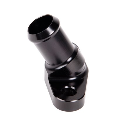 Fleece universal 45 degree turbo drain nipple with integrated O-ring seal is designed to fit 7/8" ID Hose. Made from billet aluminum and anodized in black.