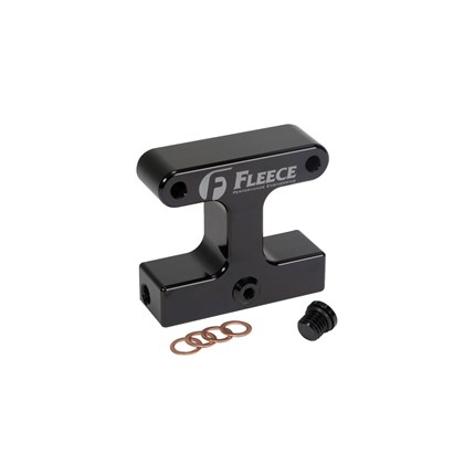 Upgrade your fuel system with this fuel filter delete from Fleece Performance Engineering. If you have an aftermarket fuel filtration system such as an Air Dog or a FASS, your factory fuel filter is no longer necessary. The factory fuel filter only becomes an extra restriction and an eye sore. This fuel filter delete will remove that restriction and help clean up under the hood of your truck. It mounts perfectly to allow the factory fuel return lines to be used without any relocating or bending. It also features a port for the factory WIF (water in fuel) sensor and a 9/18-18 O-ring port for a dual* CP3 return line.