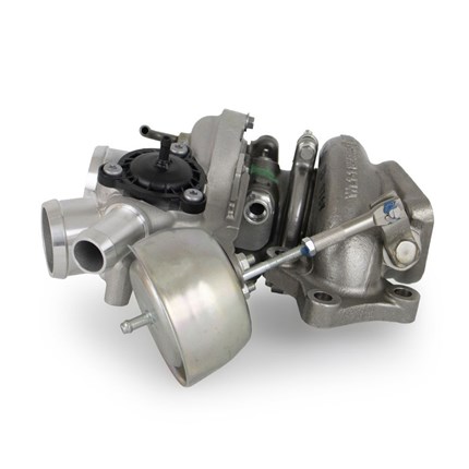 The Garrett PowerMax turbocharger upgrade for the Ford 3.5L EcoBoost engine platform is engineered to increase engine performance capability while maintaining OEM installation specifications. This direct drop-in stage 1 upgrade provides 22% more flow than OEM and will support up to 300HP from each turbo. Improvements in efficiency and flow can be attributed to the light weight forged fully-machined compressor wheel. Boost response of this PowerMax turbocharger compared to OEM has not been tested. This turbocharger kit comes fully assembled and calibrated and is outline interchangeable with the OE hardware to ensure a perfect fit every time.