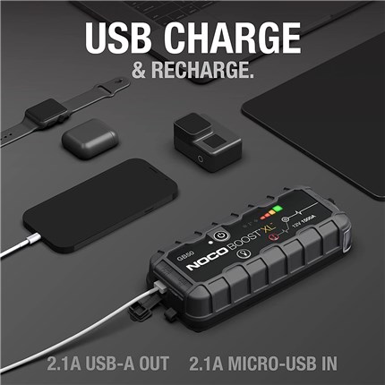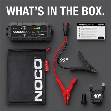 The GB50 is an ultra-portable, lightweight and compact lithium-ion jump starter for 12-volt batteries. With it, you can safely jump start a dead battery in seconds - up to 30 times on a single charge. The Boost XL is safe for anyone to use, featuring spark-proof technology, as well as reverse polarity protection. The GB50 lithium jump starter integrates with a high-output 200 lumen LED flashlight with seven light modes, holds its charge for up to one year and features a USB battery pack for recharging personal devices on the go - up to 6 smartphone recharges. Hot and Cold LED indicators of the internal battery determine when your Boost is outside operating temperatures to help protect your batteries and devices. It's rated at 1,500 Amps, and suitable for use on gasoline engines up to 7 liters and up to 4.5 liter diesel engines, such as a car, van, boat, SUV, truck and more. Included with the GB50, the new HD Precision Boost Battery Clamps easily connect to any 12V lead-acid battery from lawn mowers to trucks, USB charging cable, microfiber storage bag, our 1-year hassle-free limited warranty, and free lifetime customer support.