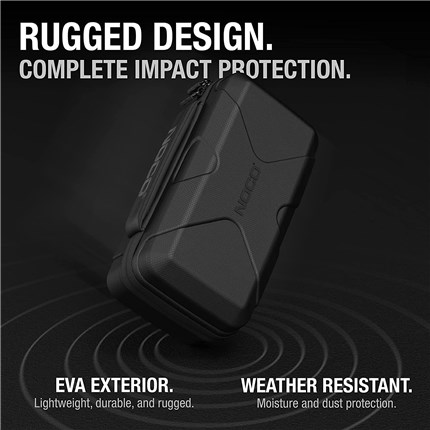 GBC101 is made from a rugged, durable, and lightweight EVA material. This crush-resistant material protects BOOST X jump starters against impacts and drops, as well as dust and splashes.