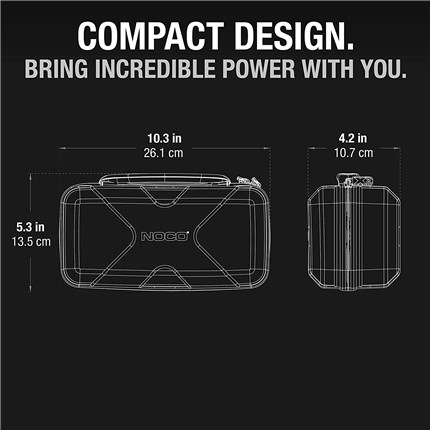 The lightweight, durable, and rugged GBC101 EVA Protective Case has a semi-rigid custom exterior with zipper closures and a reinforced handle. The rubberized EVA exterior offers protection from moisture, impact, dust, and other environmental factors, while the molded interior perfectly fits, stores, and protects its corresponding NOCO Boost X UltraSafe lithium jump starters- the GBX45 (sold separately).The GBC101 case has additional pockets for carrying related Boost accessories (sold separately). Store the protective case easily in your trunk, vehicle, console, or garage.