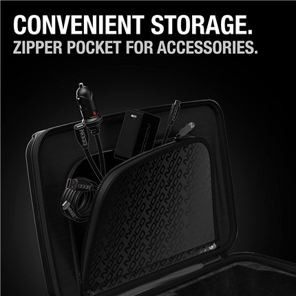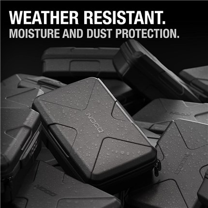 GBC104 is made from a rugged, durable, and lightweight EVA material. This crush-resistant material protects BOOST X jump starters against impacts and drops, as well as dust and splashes.