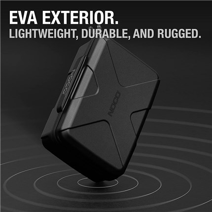 The lightweight, durable, and rugged GBC104 EVA Protective Case has a semi-rigid custom exterior with zipper closures and a reinforced handle. The rubberized EVA exterior offers protection from moisture, impact, dust, and other environmental factors, while the molded interior perfectly fits, stores, and protects its corresponding NOCO Boost X UltraSafe lithium jump starters- the GBX155 (sold separately).The GBC104 case has additional pockets for carrying related Boost accessories (sold separately). Store the protective case easily in your trunk, vehicle, console, or garage.