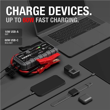 Boost X is now turbo-chargeable. It is equipped with USB-C technology that, combined with power delivery, gives you lightning-fast recharges. Completely recharge the GBX75 in 1.7 hours, or go from 0% to jump starting in just 5-minutes of charge. With Boost X’s 60W USB-C input and output, it is possible to charge up to 5X faster. Use compatible chargers up to 60W to increase your charging speed.
