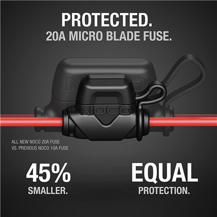 The GC003 is equipped with a new and improved built-in fuse for increased safety. Approximately 40% smaller, it offers the same/increased protection at 20Amps.