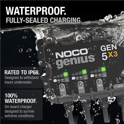 The GEN series is 100% waterproof and designed to withstand hours underwater. The GEN5X3 is an on-board charger built for extreme conditions.