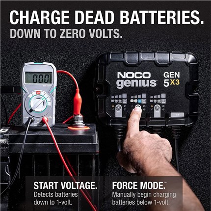 The all-new start-voltage sensor allows the Genius GEN charger to detect and charge dead batteries as low as 1-volt. For extremely dead batteries lower than 1-volt, manually turn on force mode to detect and charge batteries all the way down to zero volts.
