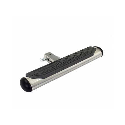 Provides easy rear step access to the bed or back of a truck, Jeep or SUV. Classic 4" oval design with 12" length and universal application for all 2" receiver hitches.