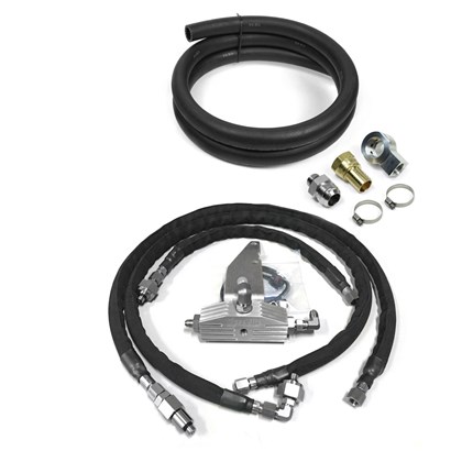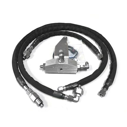 Basic Kit Includes: - High Pressure Oil Delivery System - will include a CNC machined distribution block, three CNC stainless steel adapters for engine connections, two custom precision hydraulic metering control devices, ICP extension harness, Stainless braided high pressure hoses with firesleeve protectant cover, bracket and hardware, and all fittings to complete the connections for all the high pressure lines. None of the CNC pieces, extension harness, or flow control valves included in DieselSite system can be purchased anywhere. DieselSite had to design these for this application. The hoses we use are the best that can be made. They are factory built, stainless braided high pressure hoses made to withstand 5000psi constant working pressure, 20,000lb burst pressure, and 600 degrees. This is not your typical hydraulic hose.